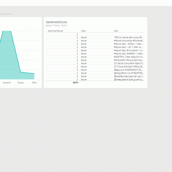 Um Daten an den Event Hub zu senden benötigt man natürlich noch eine Lösung, die die Daten sendet. Microsoft bietet hierfür einen open Source Twitter-Client, bei dem die Schlagwörter (Hashtags) ausgewählt werden können, die an Azure geleitet werden. Den Client kann man sich aus dem Downloadcenter von Microsoft herunterladen. Weiter braucht man noch eine Twitter-App, die man sich unter diesem Link bequem einrichten kann. Wie der Stream eingerichtet werden kann, und ein paar Beispiele für Stream Analytics Querys findet man unter diesem Link. In Power BI kann man sich jetzt mit wenigen Klicks ein Dashboard und einen Report erstellen und die Zahlen in Near-Real-Time beobachten.