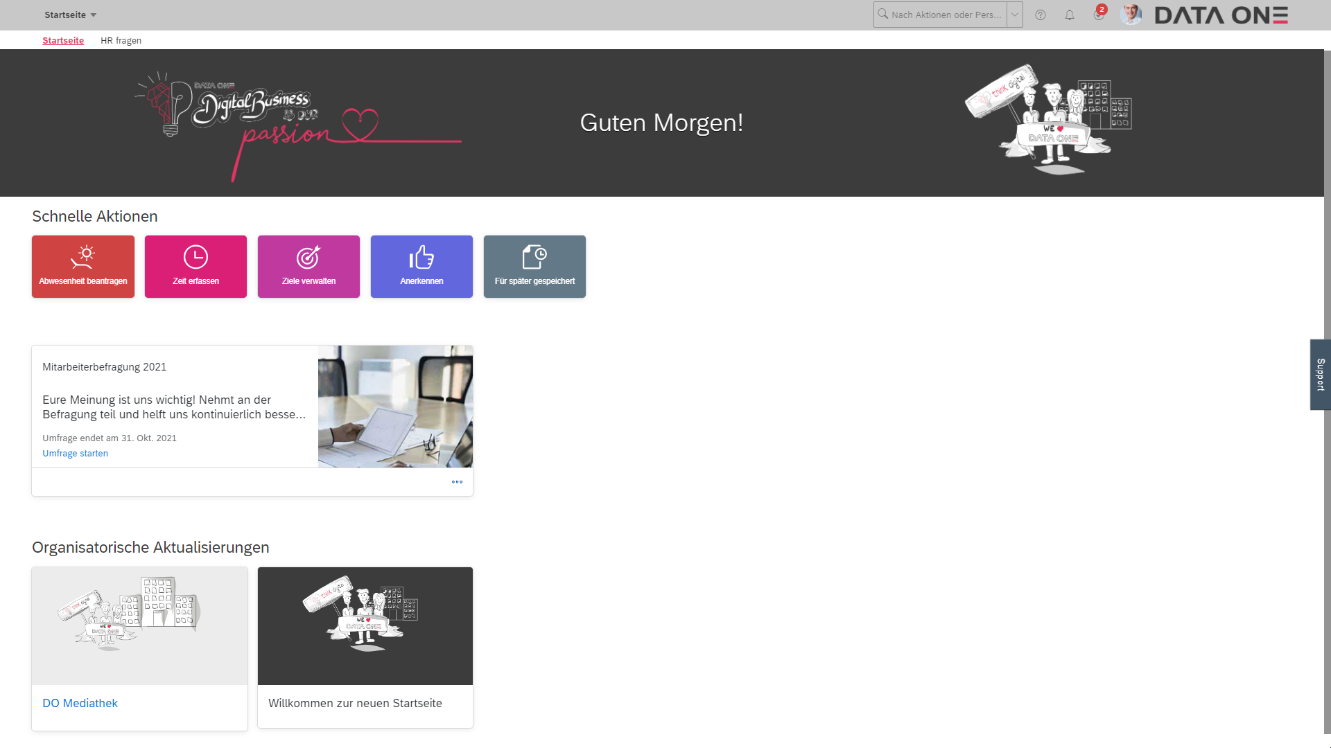 Werden dynamisch von SuccessFactors zugewiesen und zeigen aktuell wichtige Informationen. Folgende Module bieten zurzeit schnelle Aktionen und Heute für Sie Informationen: